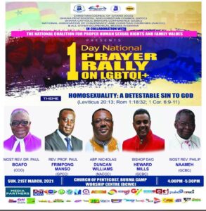 This will be organized by the Ghana Christian Council and other Ecumenical bodies in collaboration with the National Coalition for Proper Human Sexual Rights and Family Values.
