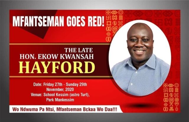 Today, Friday, November 27, 2020, has been dubbed ‘Mfantseman goes red’ set aside as a night of hymns and tributes in honor of the late MP at the Ebenezer Methodist Church, Mankessim.
