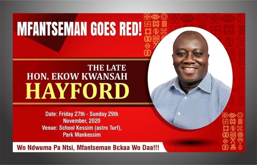 The Mfantseman constituency has been wrapped in red and black ahead of the final funeral rites of its murdered Member of Parliament (MP), Ekow Quansah Hayford on Saturday.