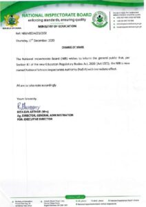 The National Inspectorate Board (NIB) under the Ministry of Education has announced a change of its name.
