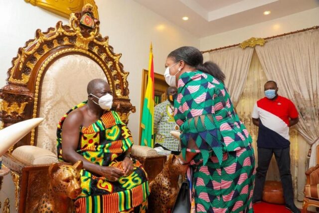 At the Manhyia Palace, Mrs. Akufo-Addo thanked Otumfuo and the AsanteHemaa for their continuous prayers and support for H.E. the President, and the NPP government since assuming office in 2017 and said President Akufo-Addo during the period has worked hard to fulfill all his promises to the people of Ghana.