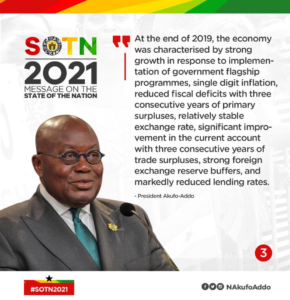 President Akufo-Addo on Tuesday, January 5, 2021, delivered his last State of the Nation Address (SONA) in Parliament.
