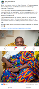 The MP, after taking his Oath of Office, promised to reaffirm his pledge to his best of ability.
